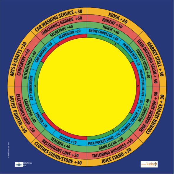 If the icon of the chosen decision depicts a coloured arrow, this means the player needs to spin the rotation disc to determine his job. The colour of the arrow indicates which coloured circle on the rotation disc panel one must refer to for that particular choice path.