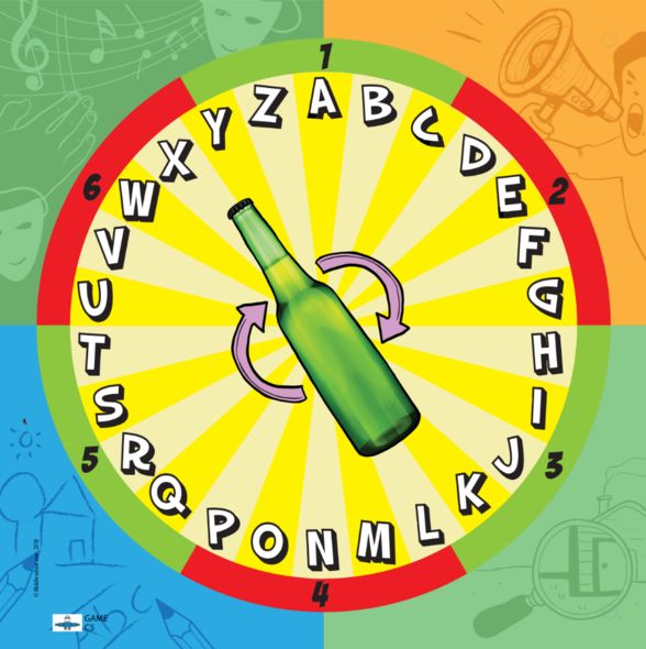 • Enacting: One player spins the arrow to choose a letter. With the chosen letter he/she enacts an animal, object, situation,... The player that first guesses what it is, gets a point.