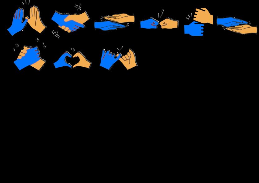 Assign handshakes to cards or symbols (e.g., high five, fist bump, wave, snap).