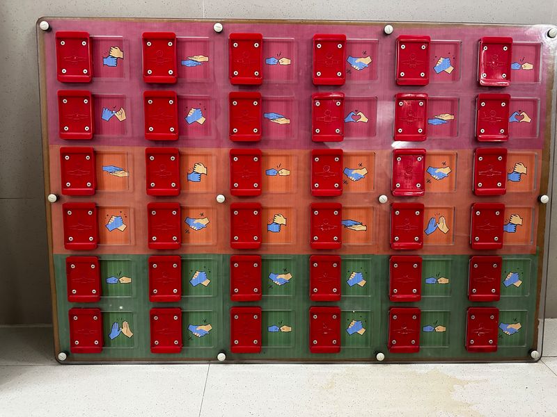 Explain that each pair must perform the handshake combinations as shown on the panel.
