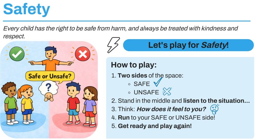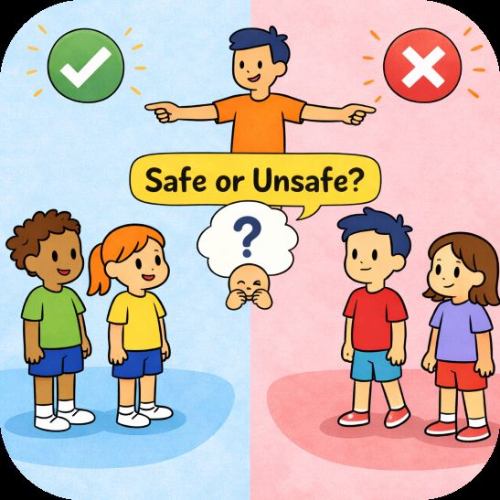 This activity encourages children to reflect on personal feelings of safety and understand that situations can feel different depending on the person. It builds awareness and critical thinking around everyday experiences.