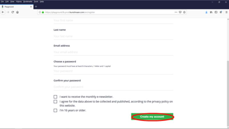 Once you have filled in the information and checked the boxes, click the `Create my account` button on the bottom of the page.
