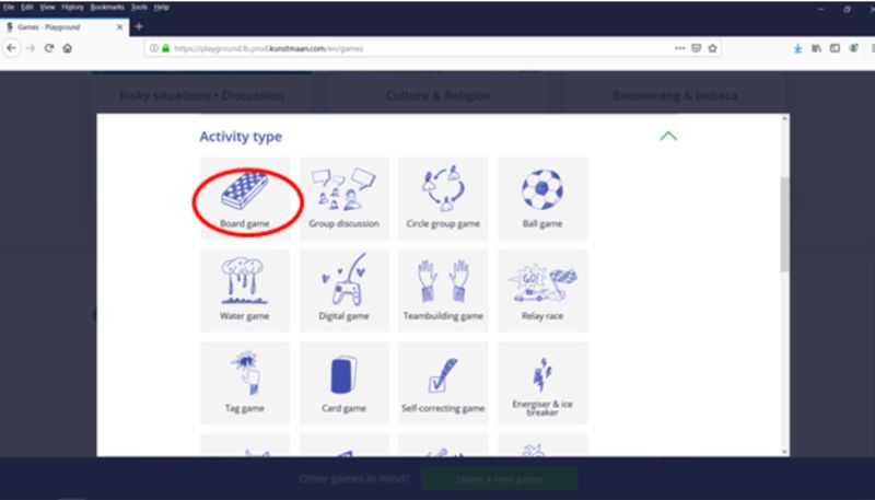 For example, if you are looking for a board game that can be played by kids of ages between 6-11, you can click on the `Activity type` category. Choose `Board game` from the list. Then scroll down and click on `Age`. Select the `6-11` interval from the list. Scroll down to the bottom of the page and click on the `Apply filters` button.