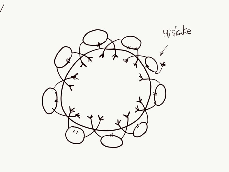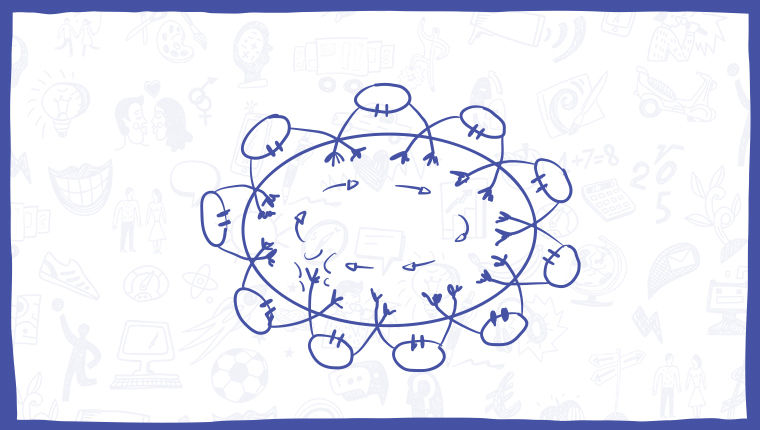 Everyone is sitting in a circle with their hands on the table or on the ground. You place your right hand over the left hand of your right neighbour and you place your left hand over the right hand of your left neighbour. Once this is done, the game can start.