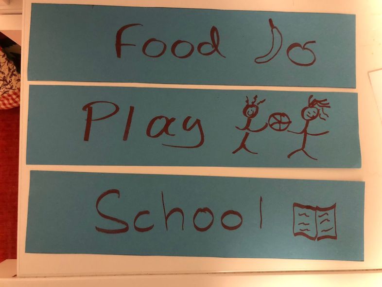 El facilitador pide a los jugadores que cojan un papel y un marcador y les pide que dibujen lo primero que les venga a la mente cuando escuchan "derechos de los niños".