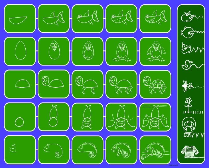 Compara sus dibujos con los del tablero de juego y explica qué le ha resultado fácil o difícil dibujar.