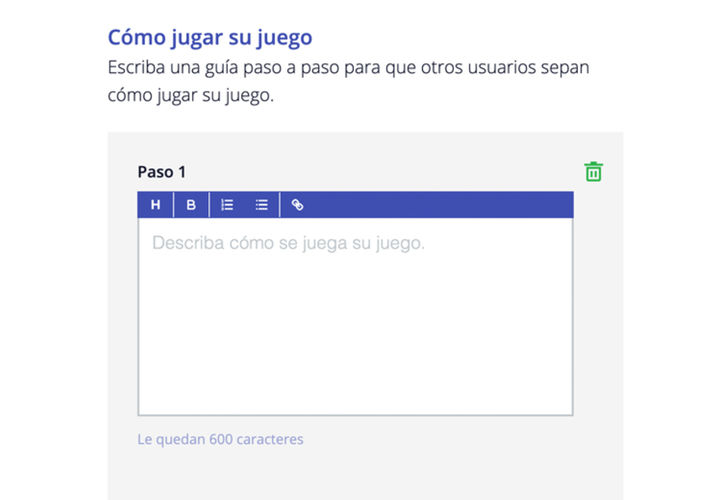 En la página ‘Cómo jugar’ deberá escribir una clara explicación de cómo jugar su juego, desde el principio hasta el final.