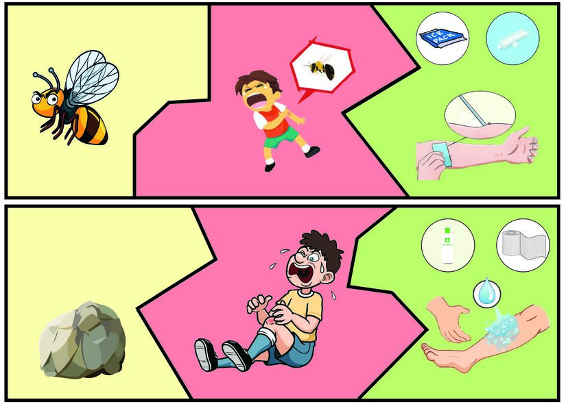 • Make the game competitive: Which child finds the correct cause/first aid solution of an injury?