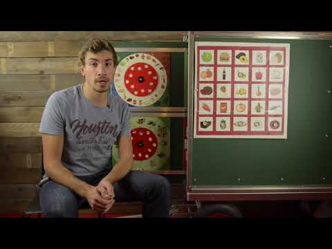 Identify the foods and beverages and try to beat your opponent on the other side of the mobile school during the Food Bingo game.