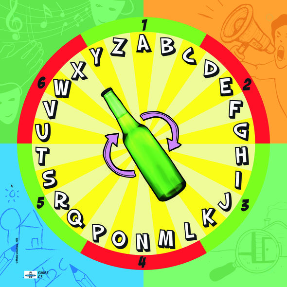 Le meneur du jeu fait tourner la bouteille jusqu'à ce qu'elle pointe vers l'une des lettres majuscules.