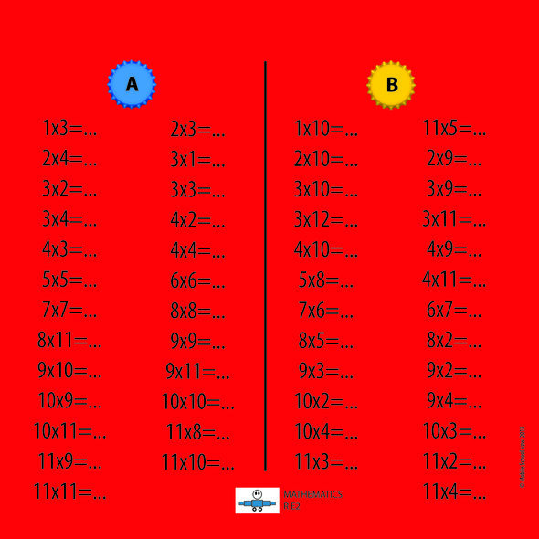 Les joueurs commencent par le premier exercice de leur série et écrivent leurs exercices à voix haute (par exemple 2 x 4 = deux fois quatre).
