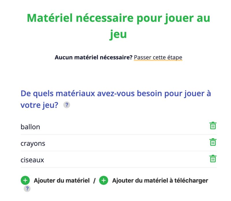 Pour certains jeux, vous devrez créer du matériel avant de pouvoir commencer à jouer. Suivez les instructions ci-dessous pour vous assurer que les utilisateurs peuvent reproduire facilement votre jeu.