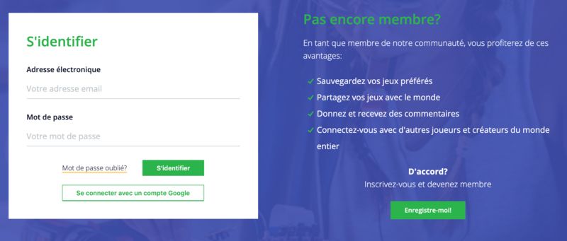 Sur la page suivante, cliquez sur le bouton `Enregistre-moi` situé à droite de la page pour créer un nouveau profil.