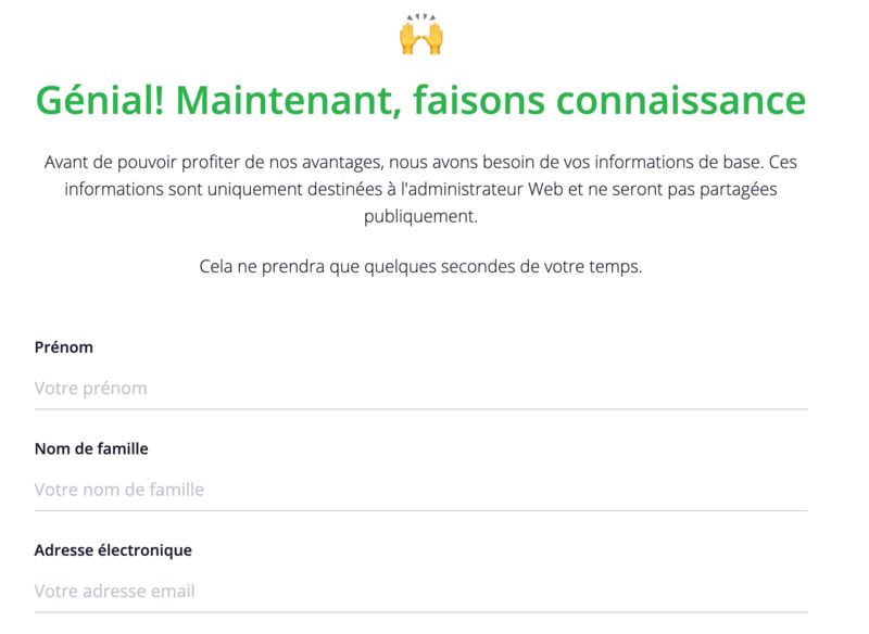 Entrez votre prénom et votre nom, entrez votre adresse électronique et choisissez un mot de passe pour votre profil.