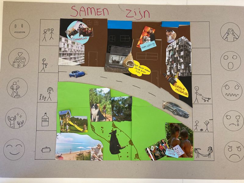 Ontwerp in het midden van het bord je eigen discussiepaneel door er een aantal situaties uit een realistische omgeving op te plakken (bijvoorbeeld een stad, een park...).